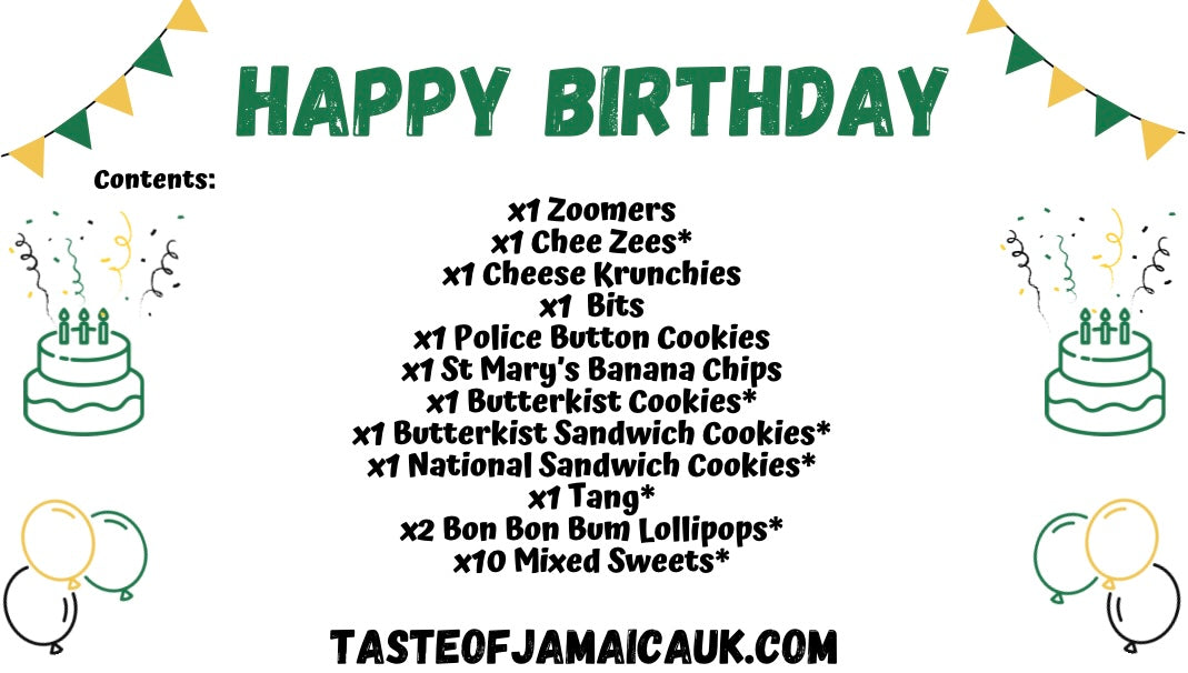 Please note that items marked with an asterisk * come in various flavours and will be chosen at random. If you have a particular preference, please include it in your order at checkout.