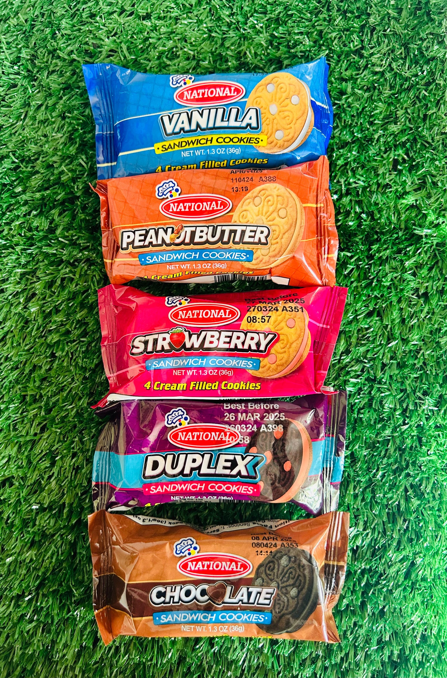 Indulge in 5 scrumptious flavours of National Sandwich Cookies: Vanilla, Chocolate, Duplex, Strawberry, and Peanut Butter