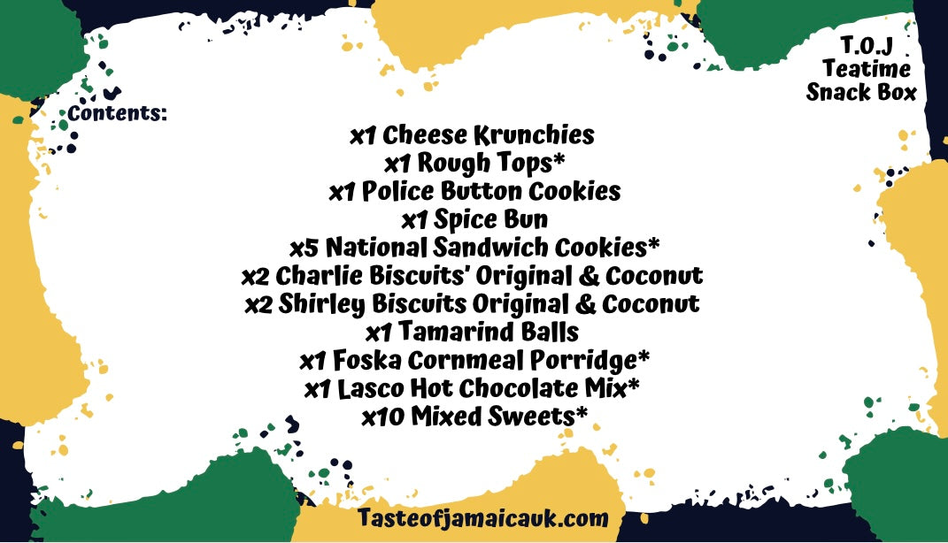 The Teatime Snack Box includes all items featured in the picture and listed below: