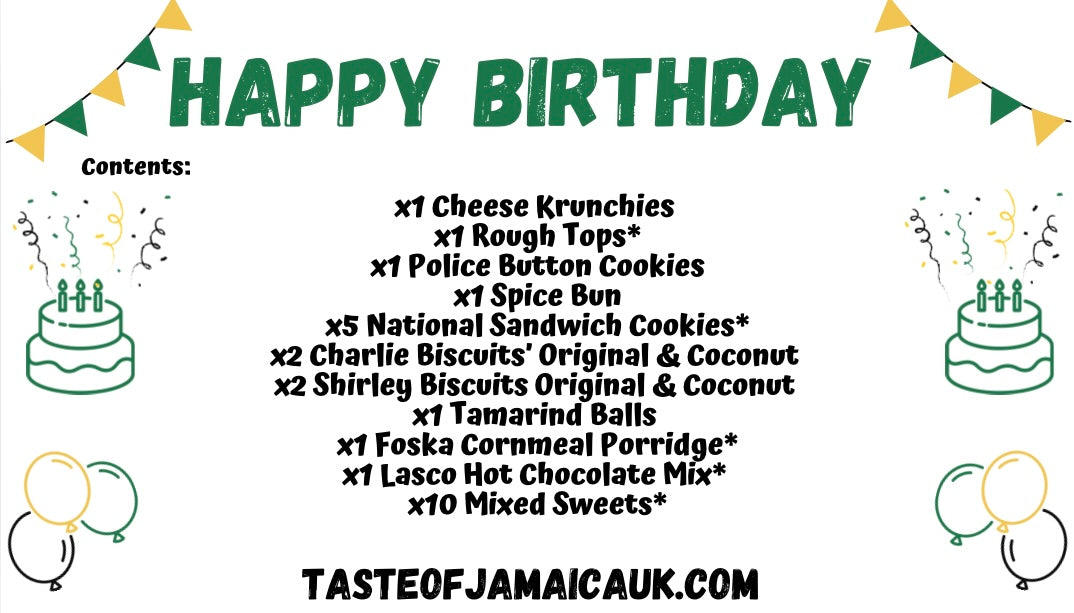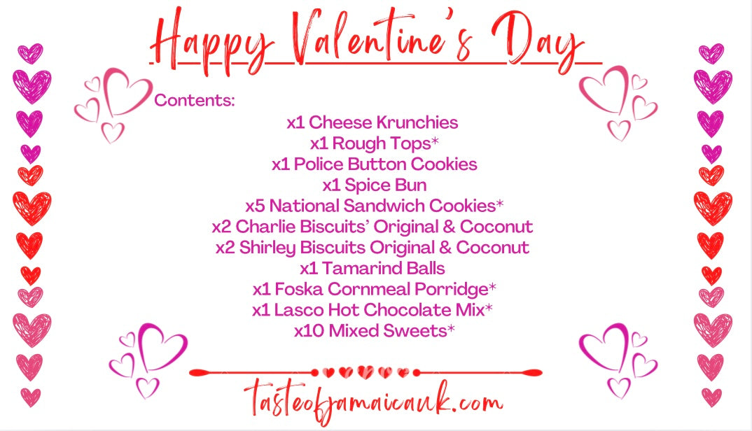 Please note that items marked with an asterisk * come in various flavours and will be chosen at random. If you have a particular preference, please include it in your order at checkout.